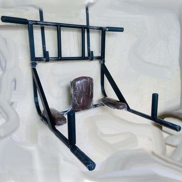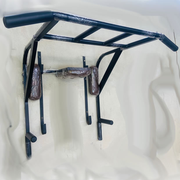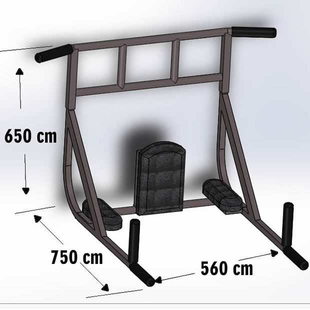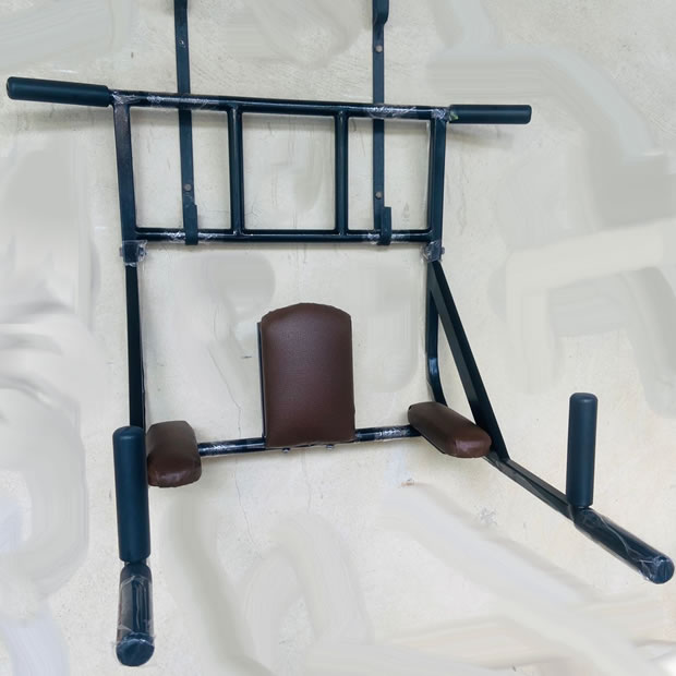 Barra Fixa e Paralela de parede 7 em 1 Multifuncional. (feito em metalon parede 18; pintura: camada de primer, preto black, verniz; apoio e encosto em tecido courino couro)